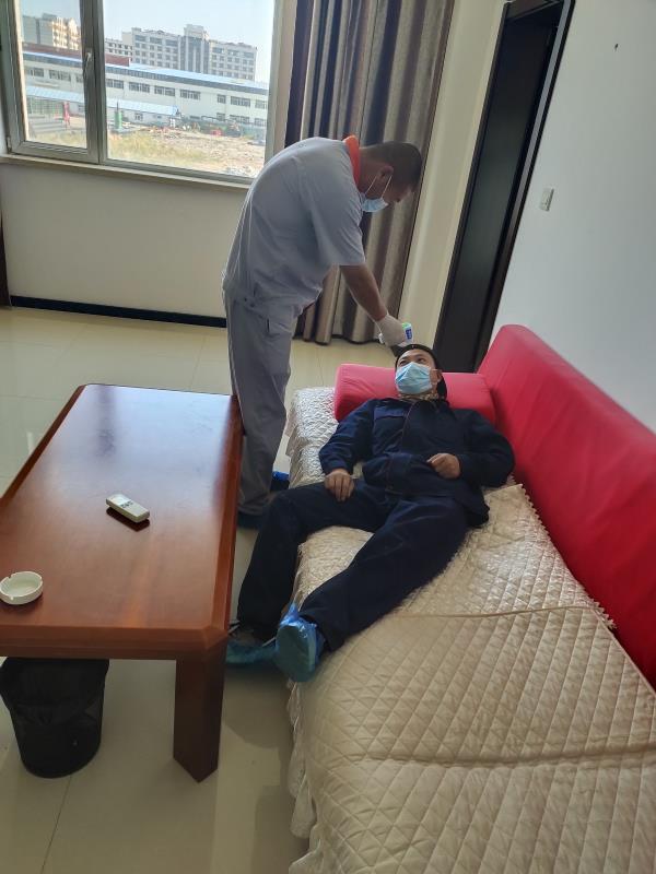 石繼軍立即將疑似人員送到隔離室觀察,并時間給大慶經(jīng)濟(jì)開發(fā)區(qū)疫情防控辦公室打電話5056895:“我們公司有一名工人,出現(xiàn)發(fā)熱癥狀,三次測量體溫超過37.5度,并伴頭疼、乏力狀況,請指示”。